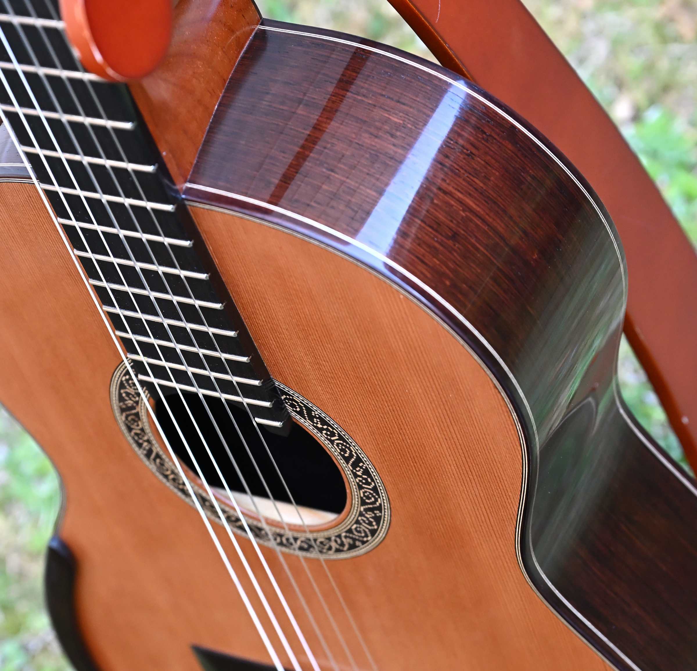 | ◆在庫品◆ 弦長 650mm 表板 ベイスギ 裏・横 ハカランダ ネック ホンジュラスマホガニー 糸巻き アレッシ(イタリア) この仕様での新作85〜90万円 現物非売 ![]() |