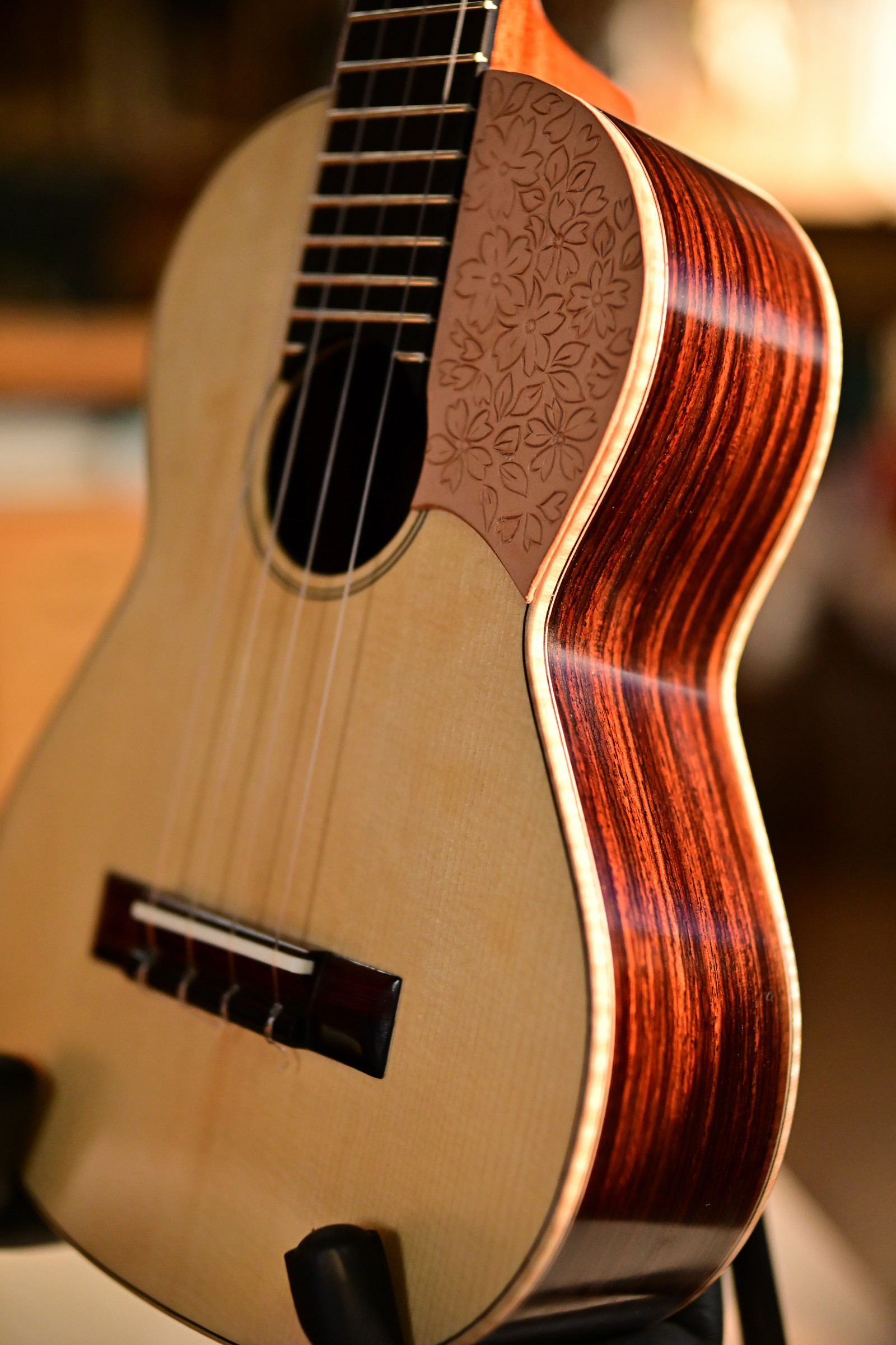 | <写真の楽器の仕様> 名称 ペケーニャ(当工房で命名) 弦長 384mm(コンサートウクレレ相当) 表板 ドイツ松 裏・横 ホンジュラスマホガニー ネック ホンジュラスマホガニー 糸巻き ゴトー 価格はこの仕様で18万円 ![]() −−−−−−−−−−−−−−−− <写真の楽器の仕様> 名称 鉄弦ペケーニャ(当工房で命名) 弦長 428mm(テナーウクレレ相当) 鉄弦対応のピンレスブリッジ 表板 レッドウッド(水没) 裏・横 ハカランダ ネック セドロ 糸巻き ゴトー 価格はこの仕様で35万円 ケースなし ![]() |